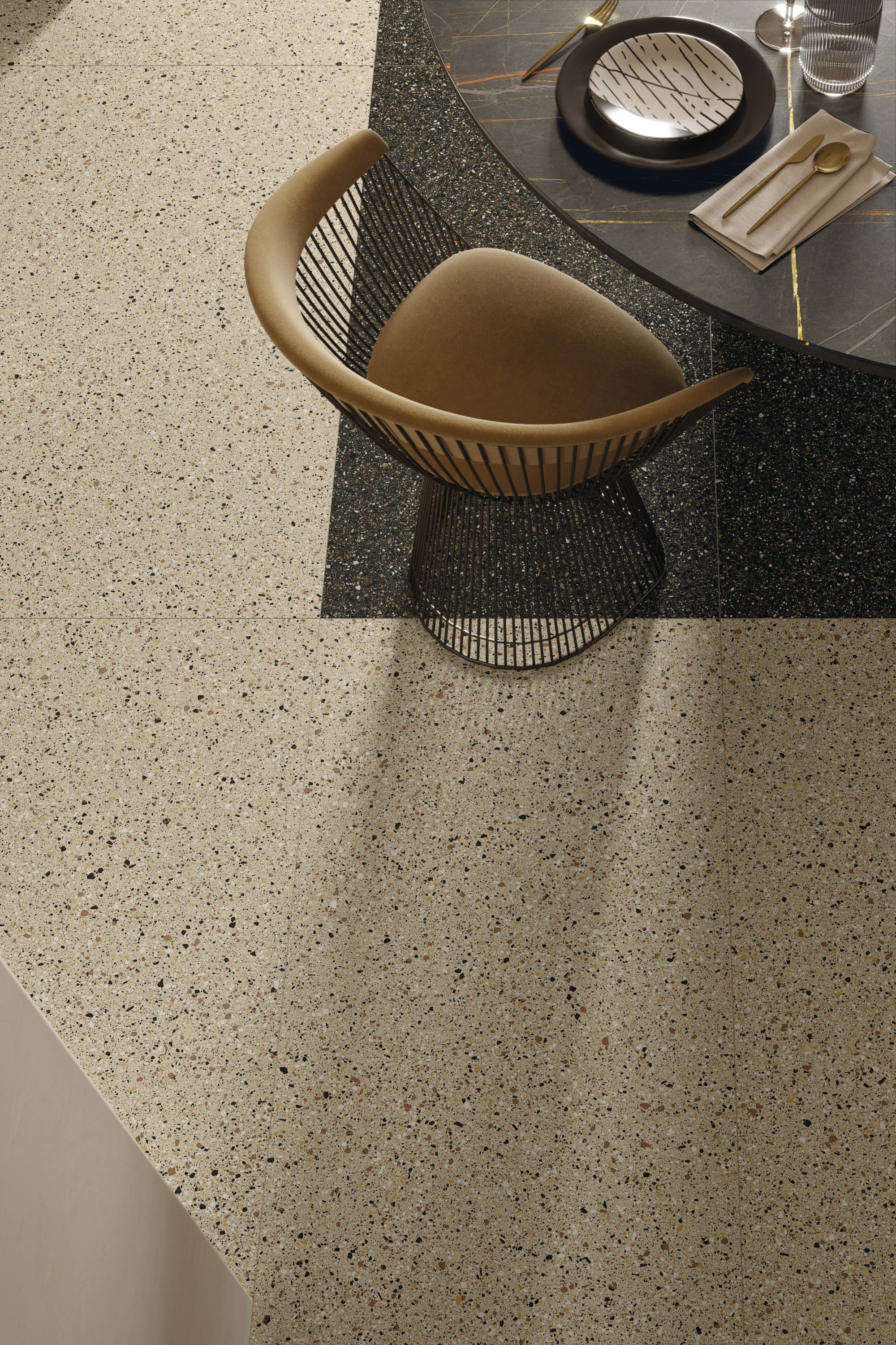 Accademia , thanks to its universal style, is perfect both for contemporary, minimalist settings and for renovation projects designed to remain in keeping with historical settings. In public and private environments, characterised by high foot traffic, full-body porcelain stoneware is the ideal choice, thanks to its particular uniformity between the surface and the internal structure: in spite of wear and tear and scratching, the appearance of the slab remains unaltered, maintaining the same texture. The six different colour variants, with names that pay tribute to the great Venetian painters of the past, are created from shades that can be combined with one another, exploring shades of beige in Canaletto and Tintoretto, grey in Bellini e Tiepolo and intense black in Veronese and Tiziano.