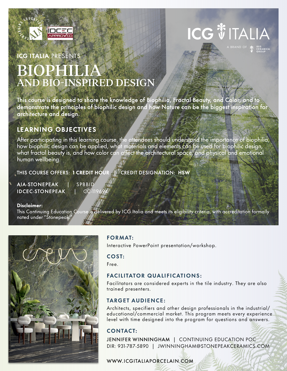 This course is designed to share the knowledge of Biophilia, Fractal Beauty, and Color, and to demonstrate the principles of biophilic design and how Nature can be the biggest inspiration for architecture and design.